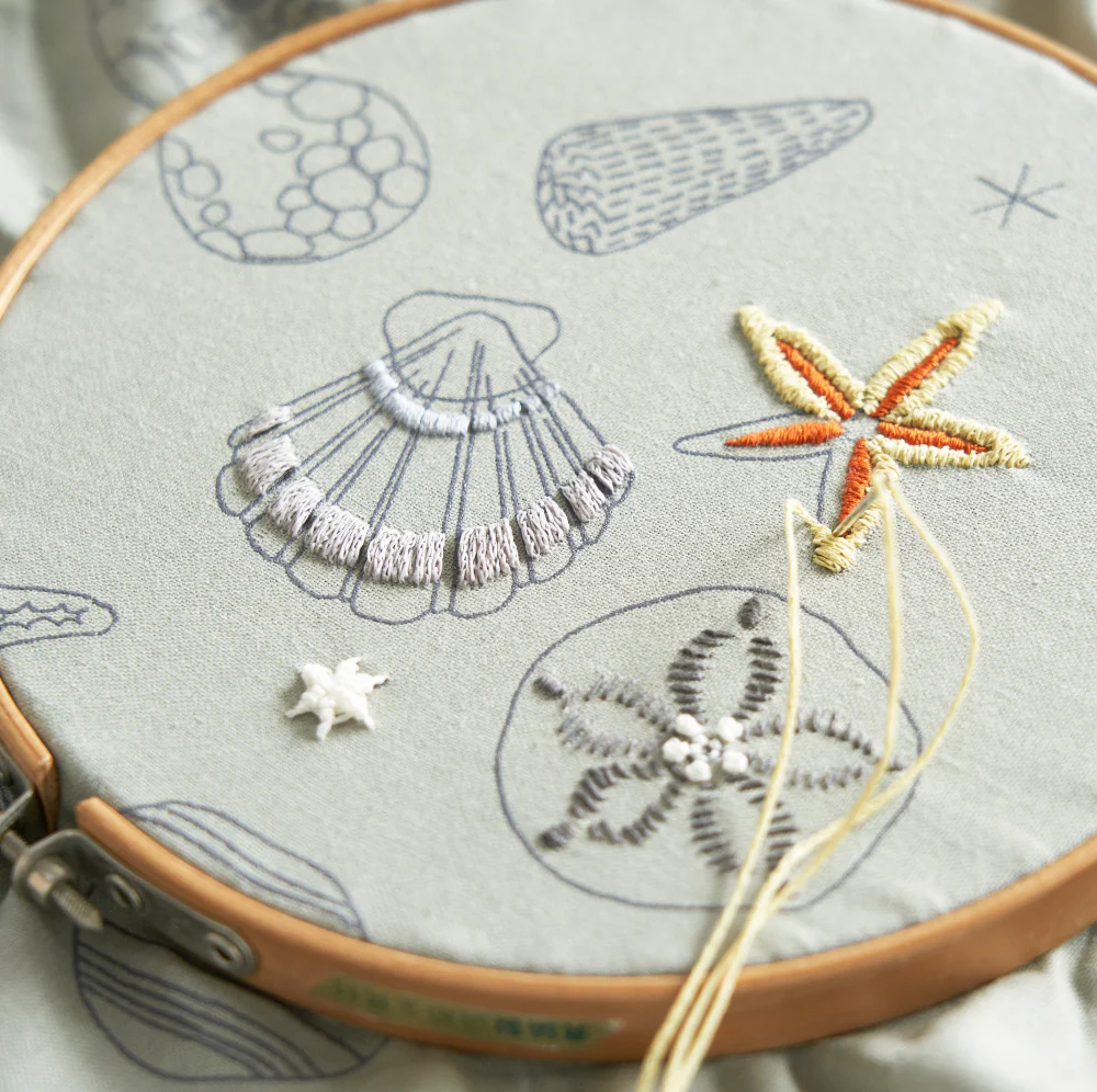 Karakara is a Japanese onomatopoeic word describing dryness or a light rattling sound — like seashells or small stones moving against each other. KARAKARA embroidery thread reflects this quality with its distinctive dry, airy texture.