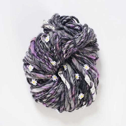Our Daisy Chain yarn was born out of our eternal love for daisy chains, flower crowns and all the wonderful feelings connected to them. Bits of tea-dyed lace, hand-printed Jaipur fabrics and daisy trims are handspun into each colorway. Of course, you'll also find our signature sparkles and pretty hand-carded heathered colors.