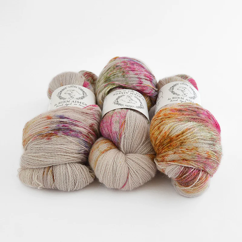 Designed specifically for La Bien Aimée, Alix is a lace weight yarn that invites creative freedom. It can be held double with itself for added body or combined with other lace weight yarns to achieve a sport weight gauge, making it wonderfully adaptable to a wide range of projects. Whether you're knitting delicate sweaters, elegant shawls, or refined layering pieces, Alix provides a plush, supple texture that feels indulgent against the skin.
